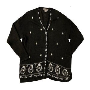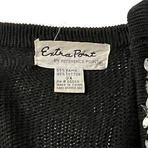 Vintage Extra Point Cardigan Sweater Size 3X Black Bling Rhinestones Snap Front