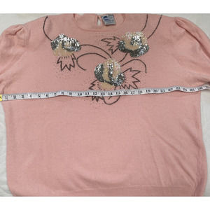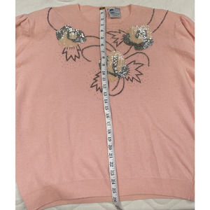 Vintage Extra Touch lambswool sweater pink With Sequined Appliqué, W Vtg Sz 42