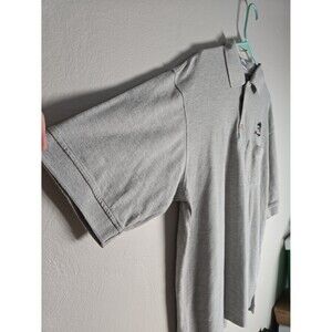 Looking for a classic and subtly unique polo? This gray short-sleeved polo shirt by Extreme is a great find! In a versatile heathered gray, this comfortable shirt features a chest pocket with a distinctive embroidered graphic of what appears to be the word "Tanglewood" in script beneath a stylized green and brown design.