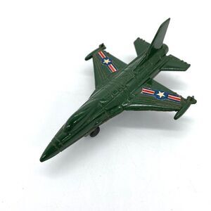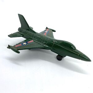 Rare Vintage F-16 Military Green Enamel Diecast Miniature Fighter Jet Pencil Sharpener. In good condition, some wear due to age. Please see photos for more details. Made In Hong Kong. Approximately 4” long, 2 3/4” wide