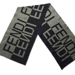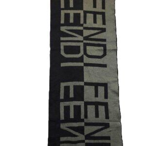 Vintage FENDI Black & Gray Inverted Logo Reversible Scarf