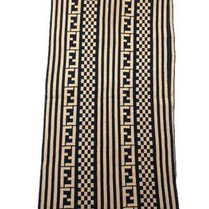 Vintage FENDI Black & Tan Multi Print Scarf Stripe/Check/Monogram 0000110