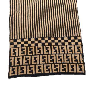 Vintage FENDI Black & Tan Stripe Check Monogram Reversible Scarf