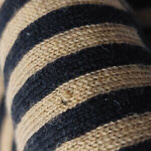 Note: Dry clean only before wearing, this item is pre-owned and may have stains, blemishes, or defects. There loose yard causing a hole in the knit weave. Please review all of the photos for imperfections.