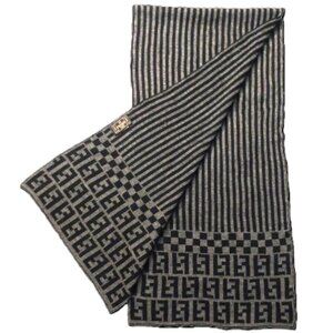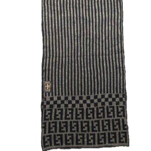 Vintage FENDI Black and Gray Stripe Check Monogram Reversible Scarf