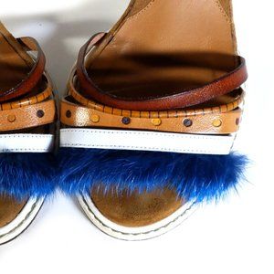 Vintage FENDI SHOES 36.5 Multicolor Fur & Leather Ankle Wrap Sandal