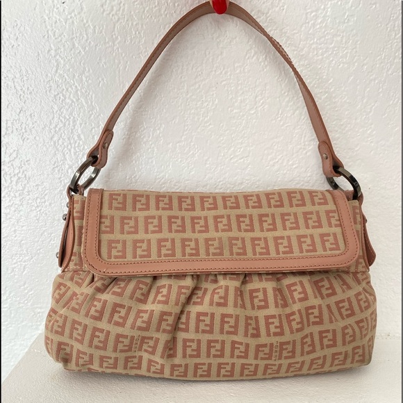 Vintage FENDI dusty pink monogram canvas Y2K 90s shoulder bag