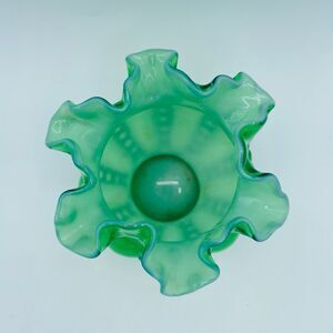 Vintage FENTON Beaded Melon Lime Green Vase Cased Glass Ruffled Edge Top