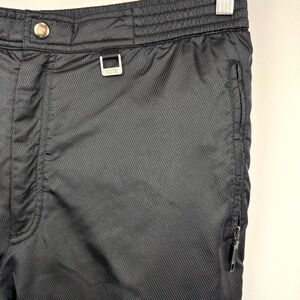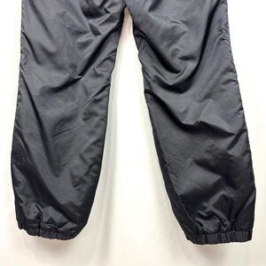 The black with a slight sheen pants are designed with a focus on functionality, featuring waterproof material that ensures you stay dry and an insulated build for warmth. Perfect for skiing or snowboarding, these pants offer both comfort and style with a touch of vintage charm, making them a must-have for any outdoor activity.