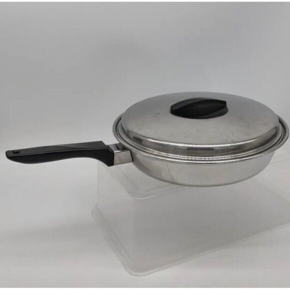 Vintage FLINT WARE-EKCO Stainless Steel 10" SKILLET Frying Pan with Lid USA.