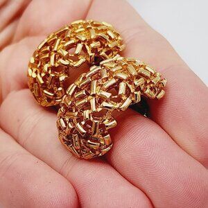 Vintage FO Rice Seed Bead Textured Domed Curved Gold Tone Stud Earrings In great vintage condition