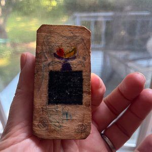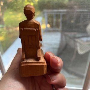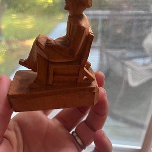 This is a very nice little wood carving of an old man sitting in rocker. Legs crossed, Beard. 3.5 inches tall and 1.5inch wide. The bottom has a lot of drawings and markings please checkout the pictures. Great piece of folk art.