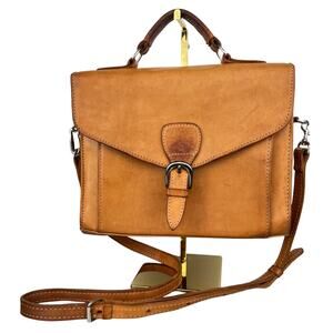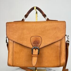Vintage FORCE TEN Classic Tan Saddle Genuine Leather Satchel Crossbody Bag Purse