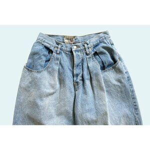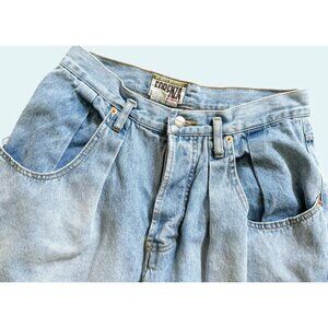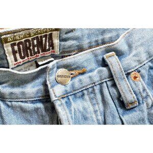 Cool pair of vintage Forenza jeans. Circa 90s / Y2K. High Waisted mom style. Tapered. Pleats. Button Fly. 100% cotton. Tag is size 10 - listed as a size 25 based on measurements (see size diagram in photo section). Small pull in fabric. Pre-owned and gently worn in really nice vintage condition!