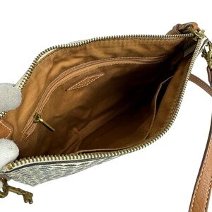 Vintage FOSSIL Blue & White Emma Coated Canvas Genuine Crossbody Bag