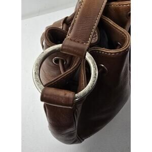 Vintage FOSSIL Brown British Tan Leather Shoulder Drawstring Bucket Bag