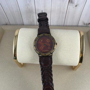 Vintage FOSSIL Buck Deer with Antlers and 5 Legs Leather Dial Gently Used DT-3201 #00562 of 5000 EXTREMELY RARE New 9 inch Brown Braided 9 inch Leather Strap Base Metal and Brass Case 1.375 inch in Diameter First released by Fossil in 1992 and limited to 5000 pieces was part of the Collector Series New Battery and spare on sale