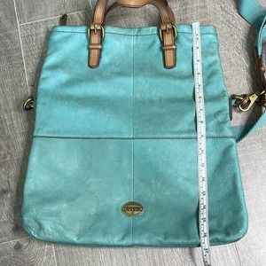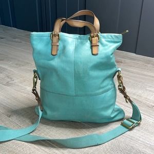 Vintage FOSSIL Teal Large Leather Explorer Foldover Crossbody Messenger Bag