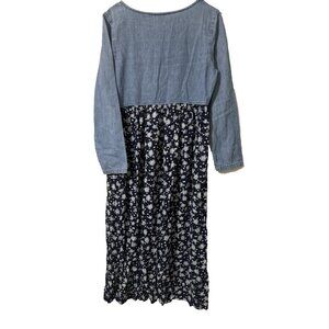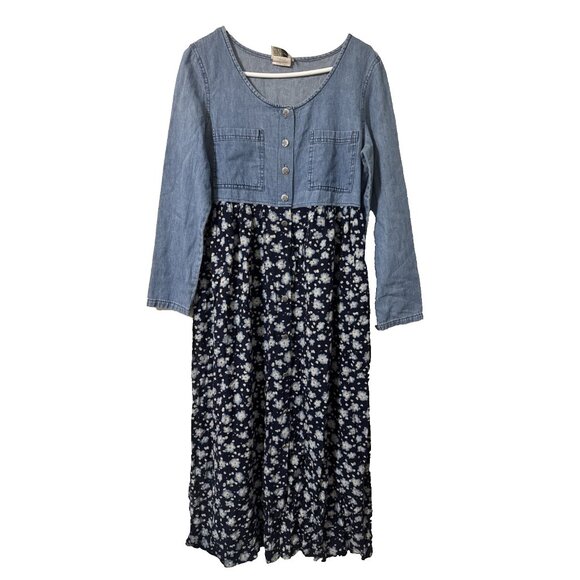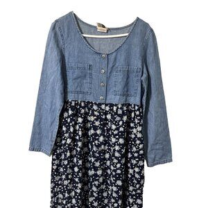 Vintage FR Sport Denim and Floral Midi Dress Size Medium (missing button)
