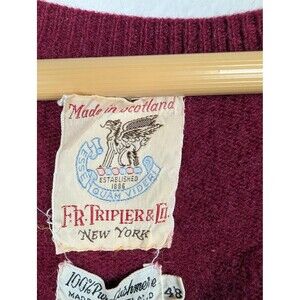 Vintage FR Tripler Sweater Mens 48 Burgundy Cashmere V Neck Made in Scotland Condition: Good, gently worn with minor signs of wear. No major flaws noted, see photos for full details. Brand: FR Tripler & Co. New York Material: 100% Pure Cashmere, mothproof Country of Origin: Made in Scotland Color: Burgundy / Dark Red Tag Size: 48 (fits like Mens XL please verify via measurements) Era: Likely 1980s or 1990s based on tag style V neck pullover style, ribbed cuffs and hem Approximate measurements (see photos for ruler reference): - Chest (pit to pit): ~24.5 inches - Length (shoulder to hem): ~27 inches - Sleeve length (neckline to cuff): ~31 inches Classic menswear stapleluxury vintage Scottish cashmere for collectors or everyday wear