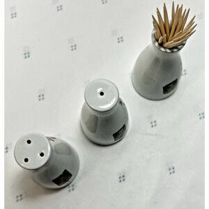 Vintage FRANCO POZZI Ceramic Salt & Pepper Shakers Toothpick Holder ITALY