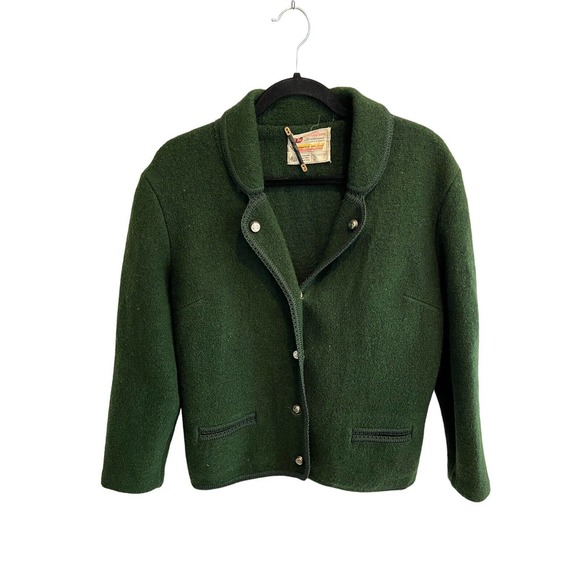 Vintage FRITZ LITZLFELDER Womens Jacket Coat Green Wool Blazer Button Front M ?