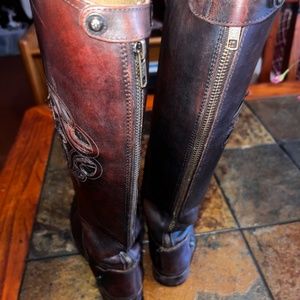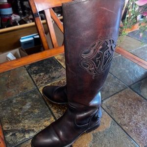Vintage FRYE Lindsay Riding Monogram High Logo Leather Zip Boots in 5.5 Rare