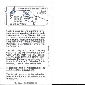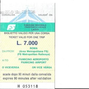 Vintage FS Rome Italy Lazio One Way Railway Ticket