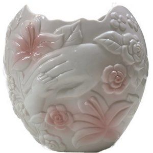 Vintage FTD 1993 Embossed Mother Child Hands White Pink Ceramic Planter Vase