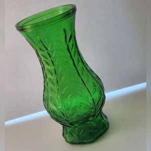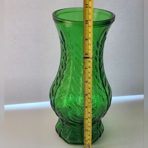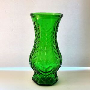 Vintage 1978 FTD Emerald Green Glass Flower Vase 10” Decorative Leaf Design.