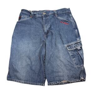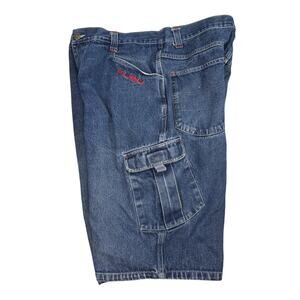 Vintage FUBU The Collection Baggy High Rise Cargo Shorts Mens Size 38 Blue Denim