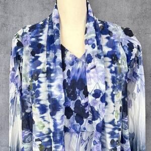 Style: Abstract, floral, designer, Y2K, vintage, mesh, tulle, layered, Italian, ruched side, surplice neckline