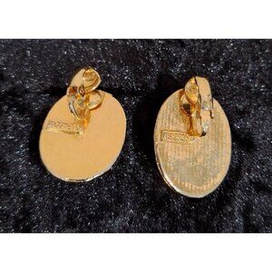Vintage Faberage' Gold Tone and Black Enamel Faux Pearl Clip-on Earrings