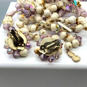 Vintage Fabiola Purple Parure, Triple Strand Beaded Choker and Matching Clip On