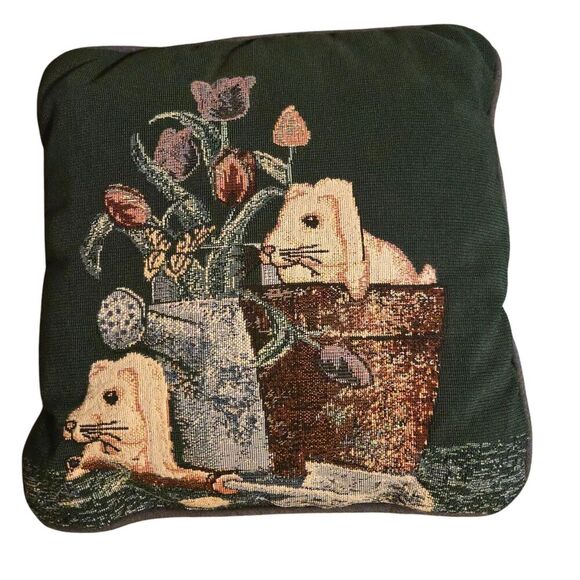 Vintage Fabric "Bunny Rabbit" Tapestry Pullow Floral Cottage Core Spring Easter