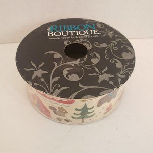 Vintage Christmas Ribbon Roll Woodland Animals New