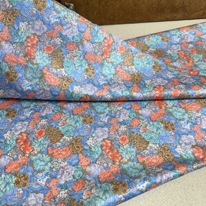 Vintage Fabric Material Textiles Floral Stretchy Peach Blue Brown 58 x 40 Inches