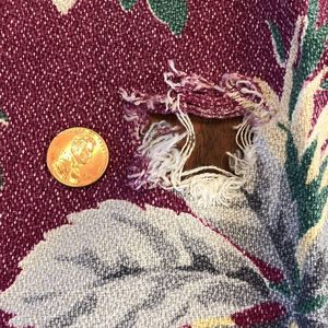 Vintage Tablecloth / Fabric Piece Floral Flowers Leaves Rectangle 44x37 Table Cloth Needs TLC. Has some holessee pictures. Some fading. No mildew or smoke smell. Might be cotton, no sure. Could be used to make small pillowcases or other creations! Shipped with great care. Thank you for viewing this item and visiting my closet!