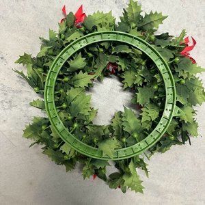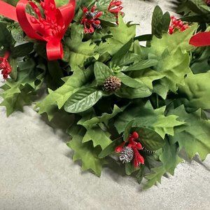 Vintage Fabric and Plastic Christmas Holly Wreath with Bows