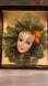Vintage Face Brooch Lace and Tulle with Orange Accent Flowers Flapper Girl