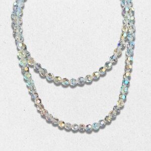Vintage Faceted Aurora Borealis Beaded Necklace Barrel Clasp Clear/Iridescent OS
