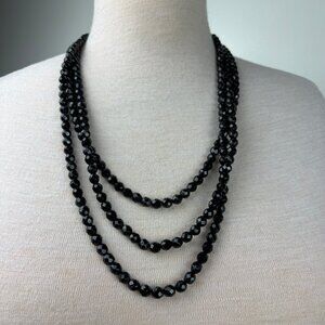 Vintage Faceted Black Crystal Glass Triple Strand Bead Necklace
