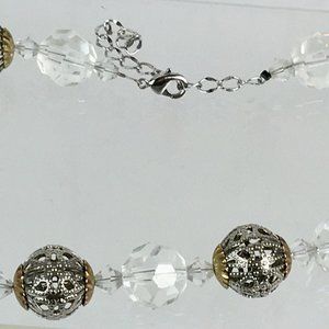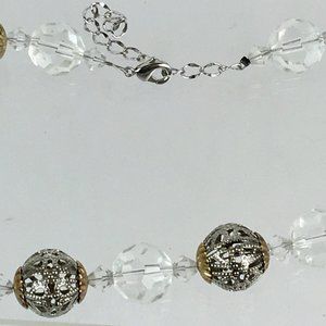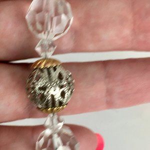 Vintage Faceted Crystal Beads and Filagree Metal Beaded Necklace Jewelry
