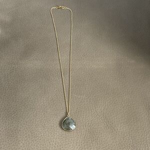 Vintage Faceted Labradorite Tear Drop Pendant Necklace 17" Gold-tone Gemstone