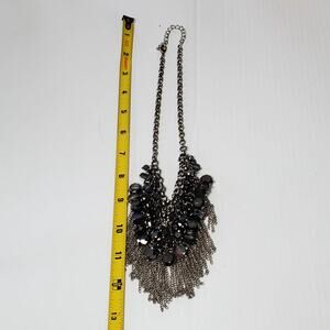 Vintage Faceted Matte and Shiny Labradorite Beads Bib Necklace with Fringe 16 inches.