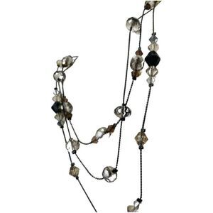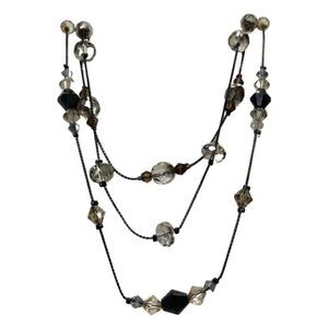 Vintage Faceted Shimmering Glass Beaded Gun Metal Multi Strand Necklace