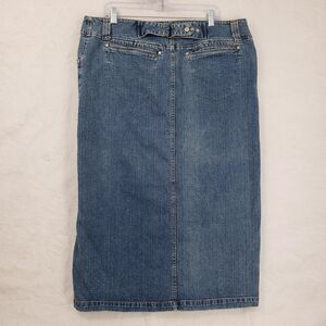 Vintage Faded Glory Denim Midi Skirt Women 18 Blue Stretch Zip Coin Pocket YKK