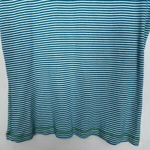 Faded Glory 90s Y2K vintage striped top in blue and white. Contrasting lime green neck. Scoop neck. Short sleeves. Ribbed. Stretch. In good used condition. No stains, tears or holes.