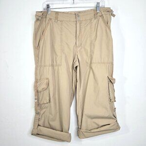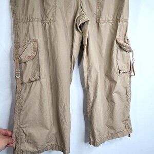 Vintage Faded Glory Khaki Beige Roll Tab Cargo High Rise Pants Y2K 90s