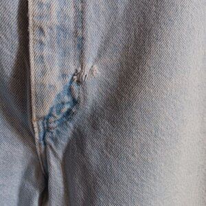 Small hole near the zipper on the front.